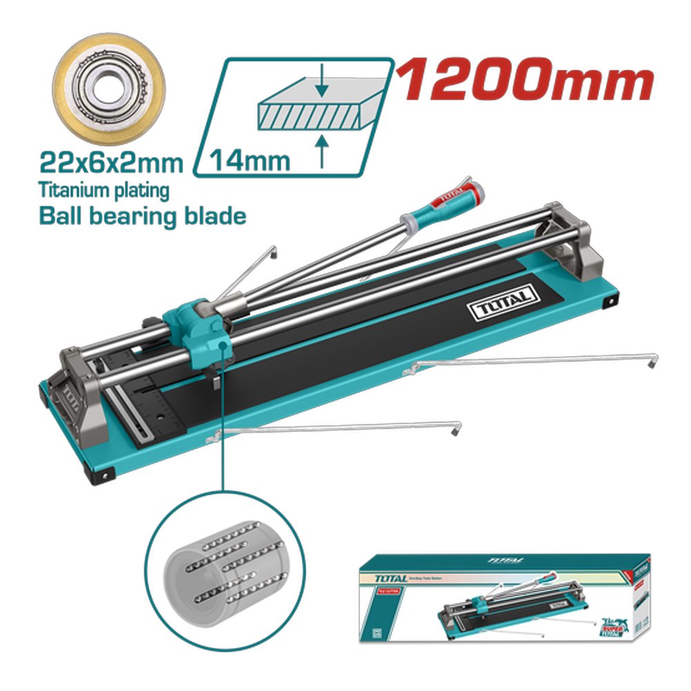 El Cortabaldosa con Rodaja de Tungsteno 1200mm (THT12001) de Total Tools es ideal para cortar cerámicas y porcelanatos con precisión. Con una longitud máxima de corte de 1200 mm y un grosor máximo de corte de 12 mm, ofrece versatilidad para realizar cortes en línea recta o en diagonal. Su barra deslizante de 20 mm asegura un movimiento suave y estable, mientras que su base de 2 mm de grosor proporciona una mayor durabilidad. Este cortador es perfecto para trabajos de alta calidad en pisos y paredes. Empacado en caja de cartón.