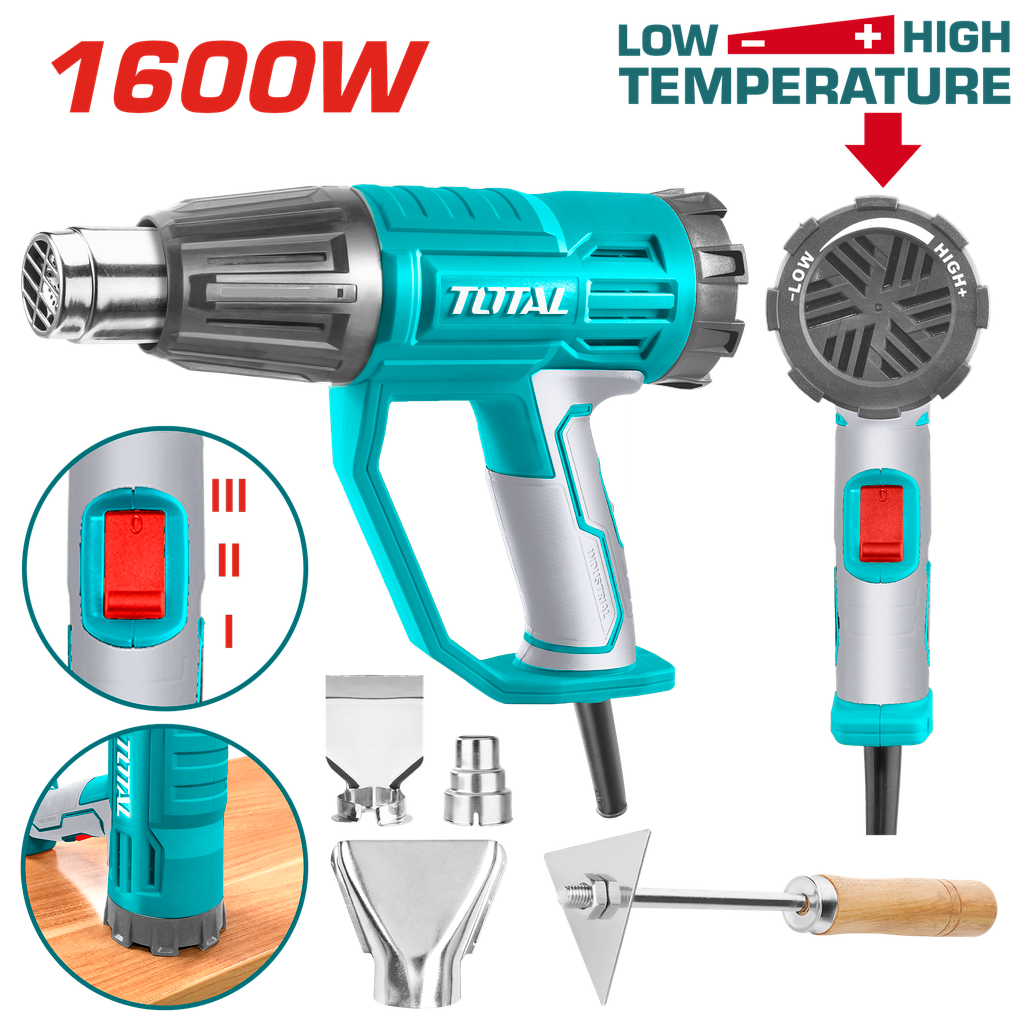PISTOLA CALOR CON TEMPERATURA AJUSTABLE 1600W INCLUYE 3 BOQUILLAS Y 1 RASCADOR INDUSTRIAL TOTAL (UTB16045)